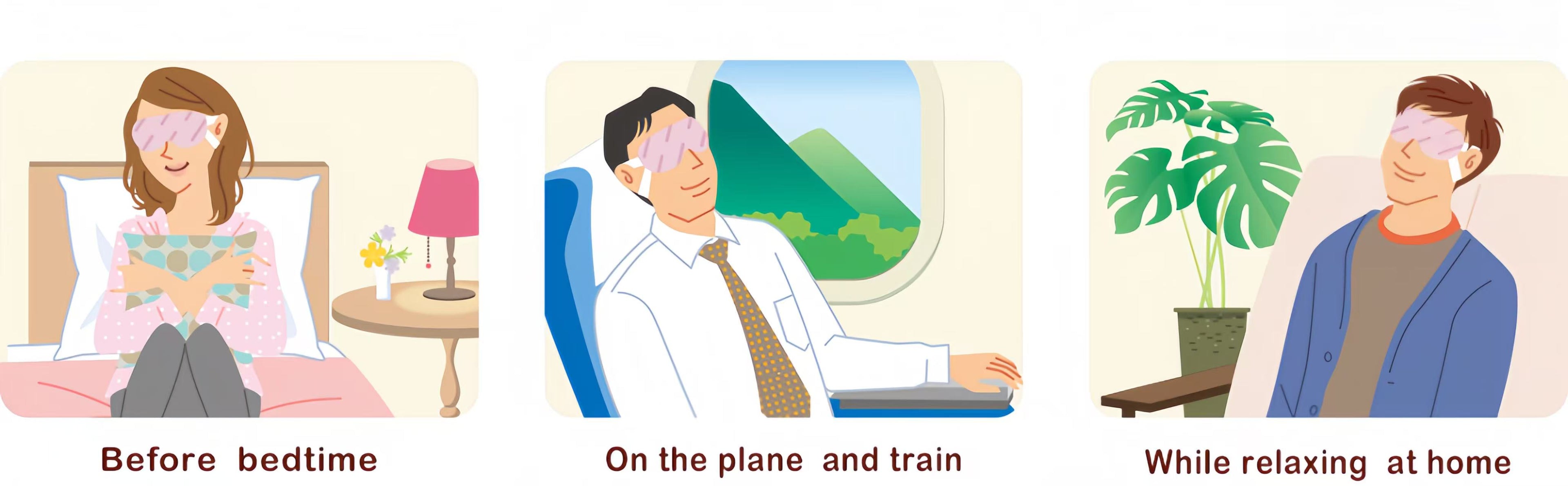 Swelling may occur when the steam generated is trapped inside the eye mask, for instance, if a used sheet is folded and left lying on an open surface, or when a sheet is used in low-pressure environments such as a plane cabin. This is no cause for alarm. The steam will dissipate in time, and the eye mask will not heat up or burst.